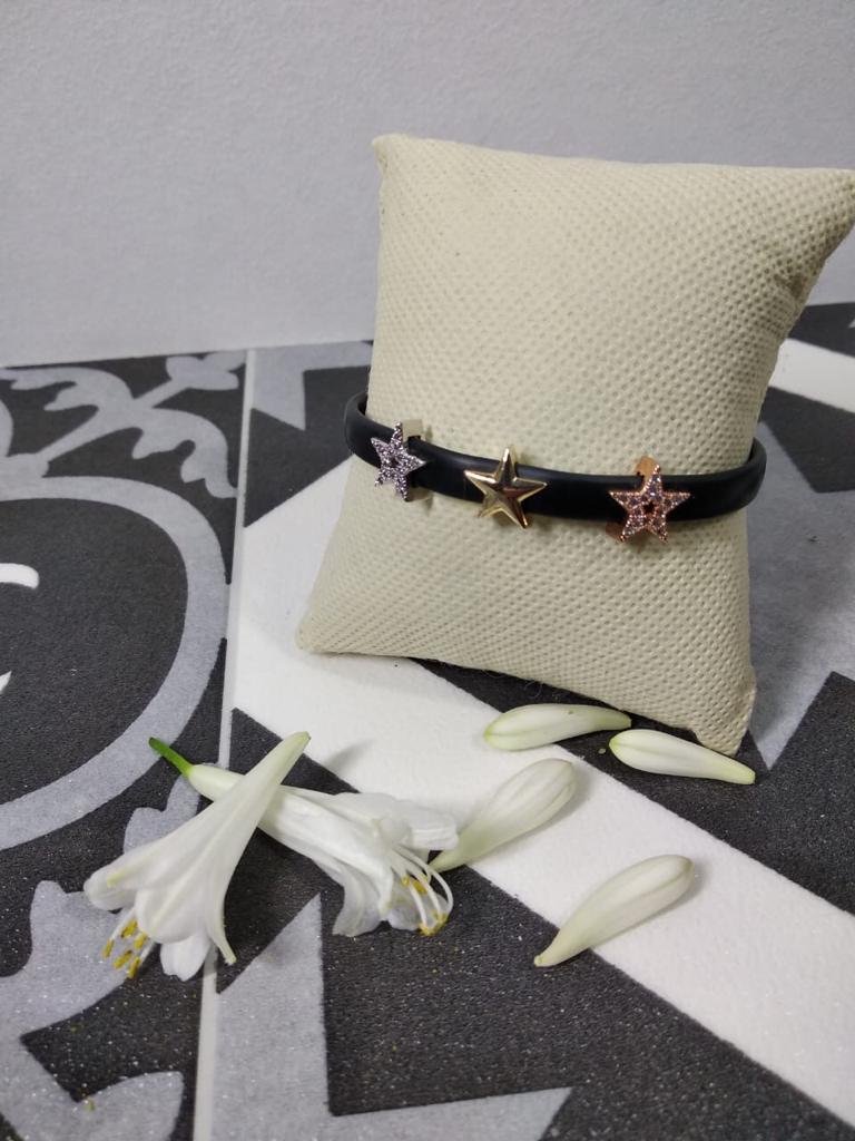 Pulsera de Acero Pedrerìa Negro y Blanco